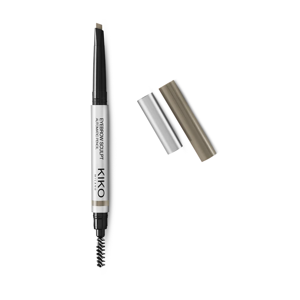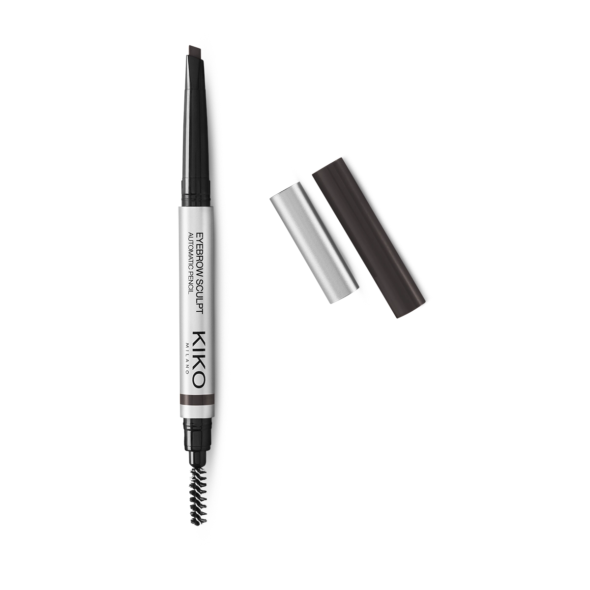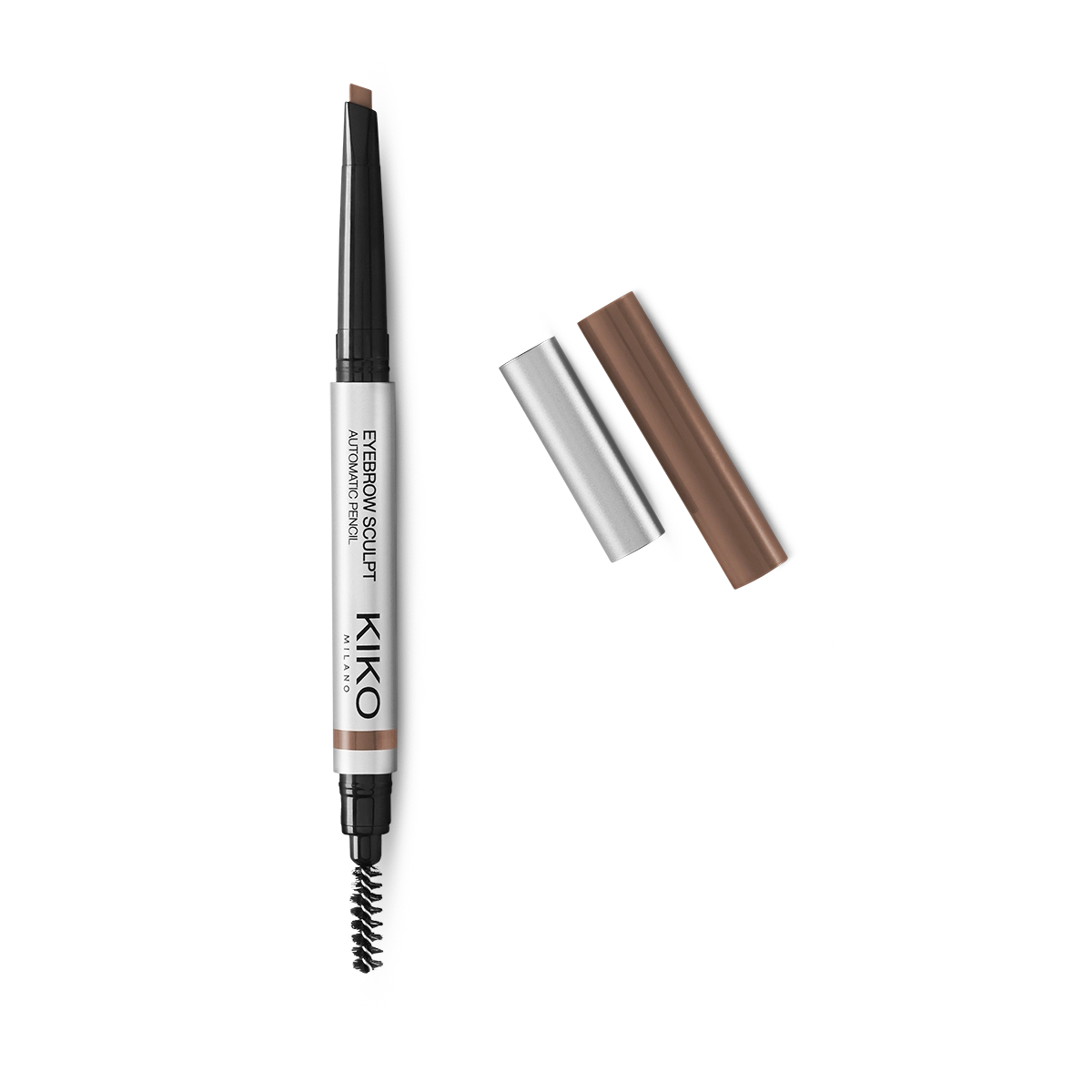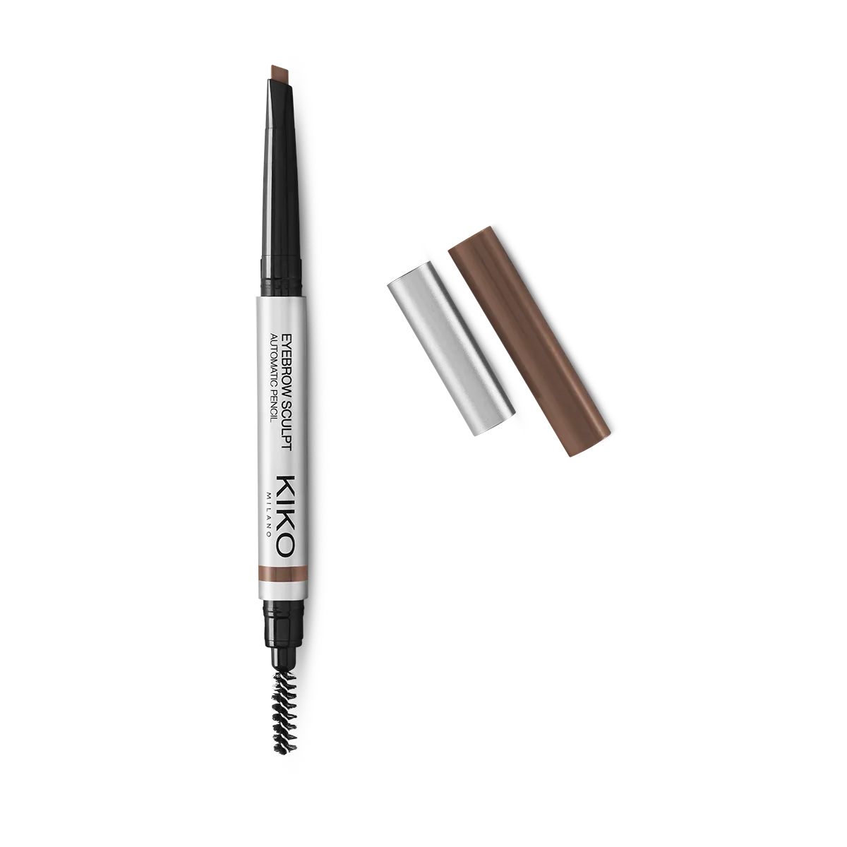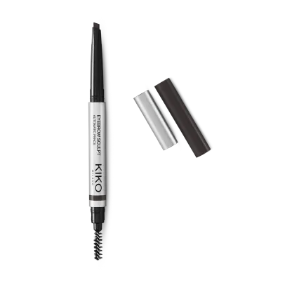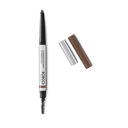 Automatic pencil with a chisel tip offering three options for creating well-defined eyebrows: