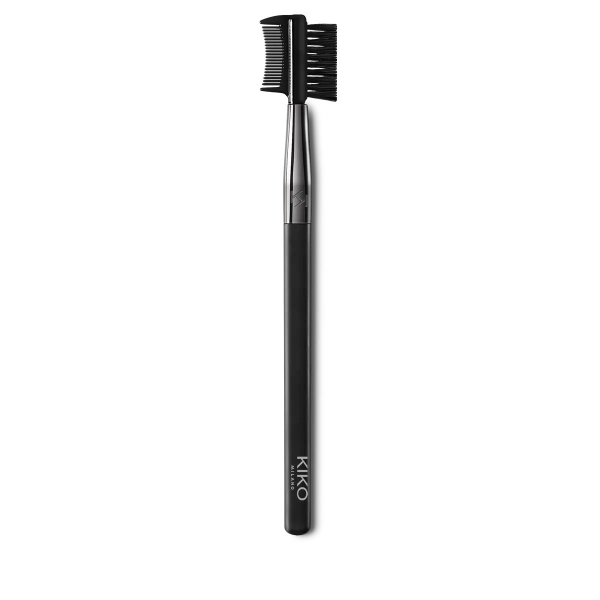Brush for combing and grooming unruly eyebrows; a professional tool for creating alluring eyes. The comb side can be used to remove excess mascara to prevent clumping.