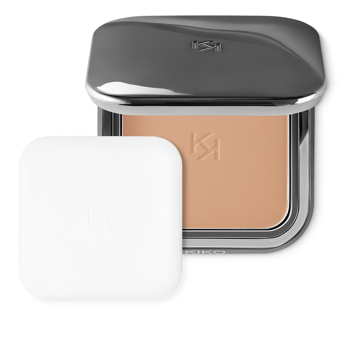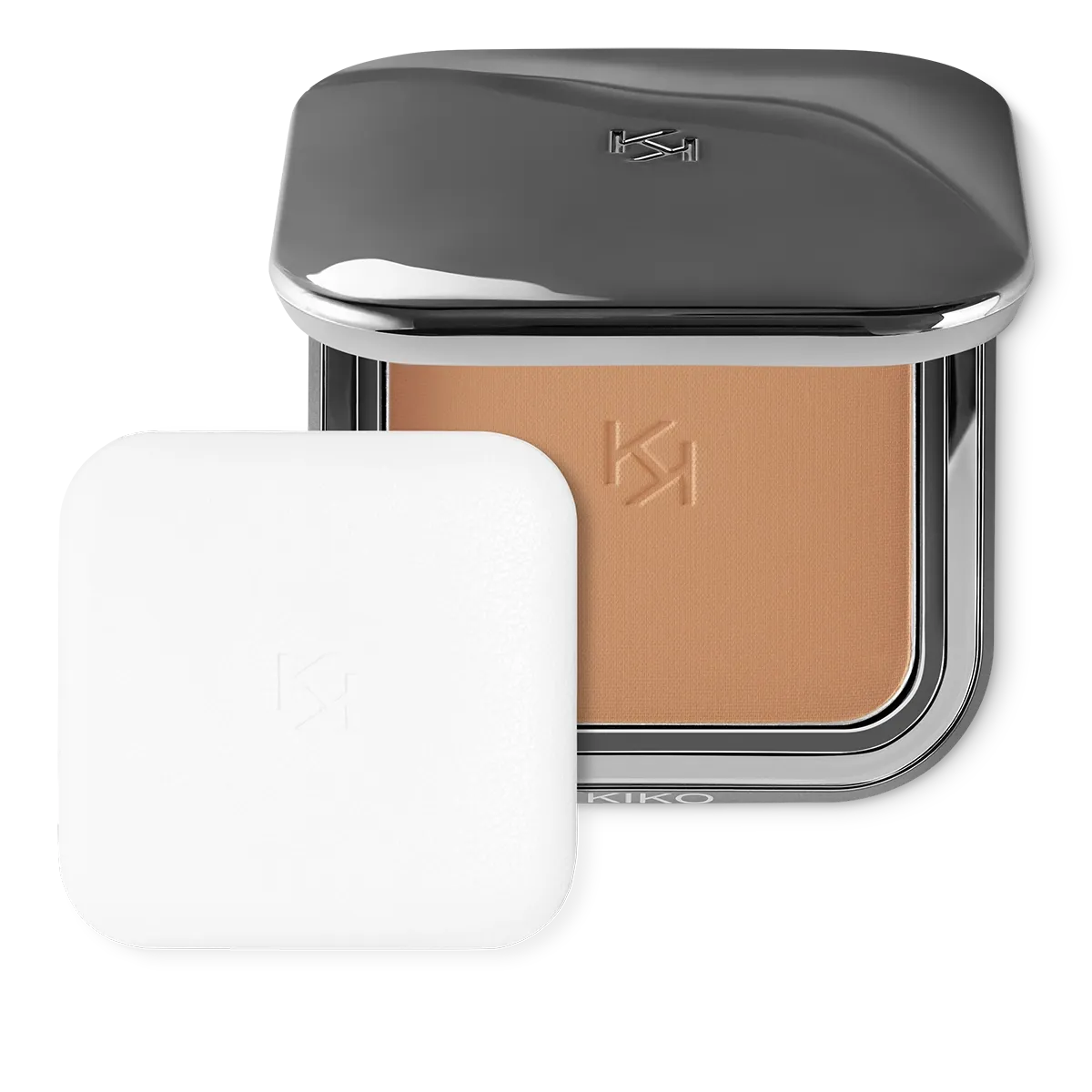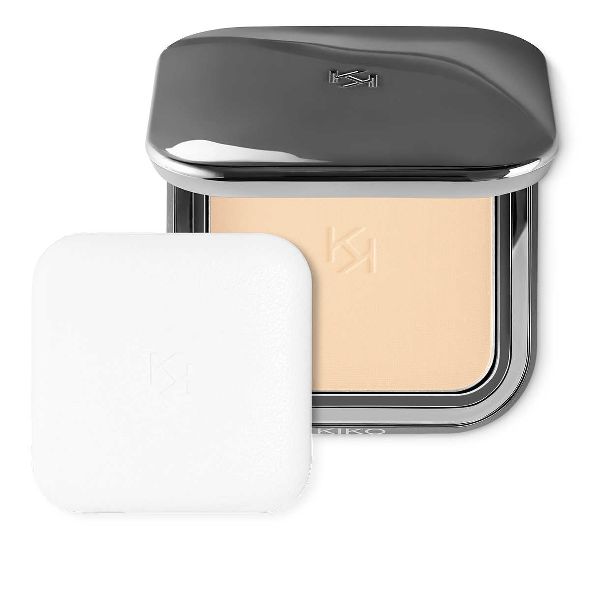 The powder comes in a modern compact with a gunmetal finish and the KK logo engraved on the cover. The case has a magnetic closure and an internal mirror. A special applicator, designed purposefully for a flawless application, is included.