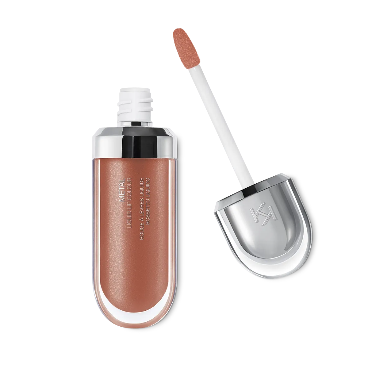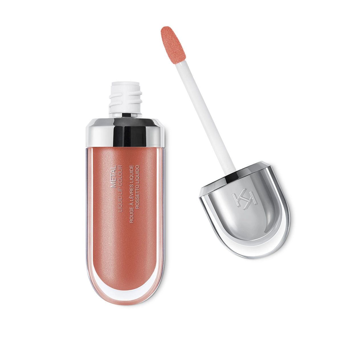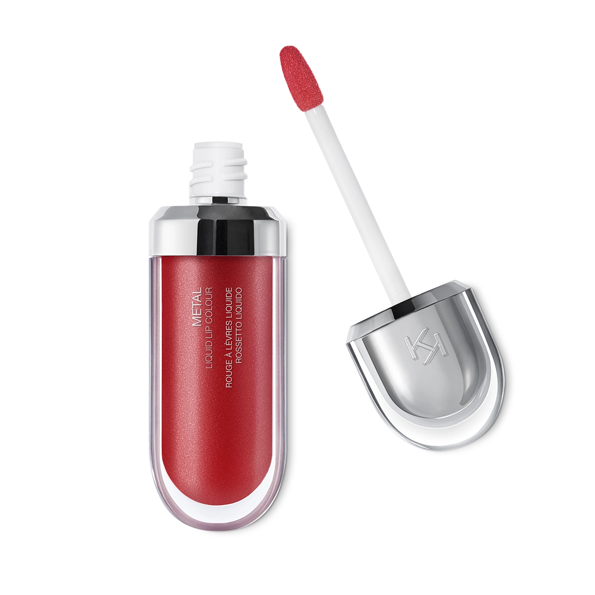 The contemporary packaging stands out thanks to its metallic cap with the KK logo embossed on the side. The flocked applicator is designed to outline the lips with extreme precision.