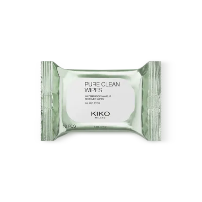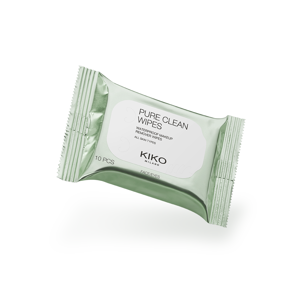 Pack of 10 mini single-use makeup remover wipes for the face, eyes and lips.