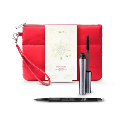 An Eye Makeup Gift Set, featuring volumising and lengthening mascara and black eyeliner pencil, all presented in a super-cool fabric pouch.