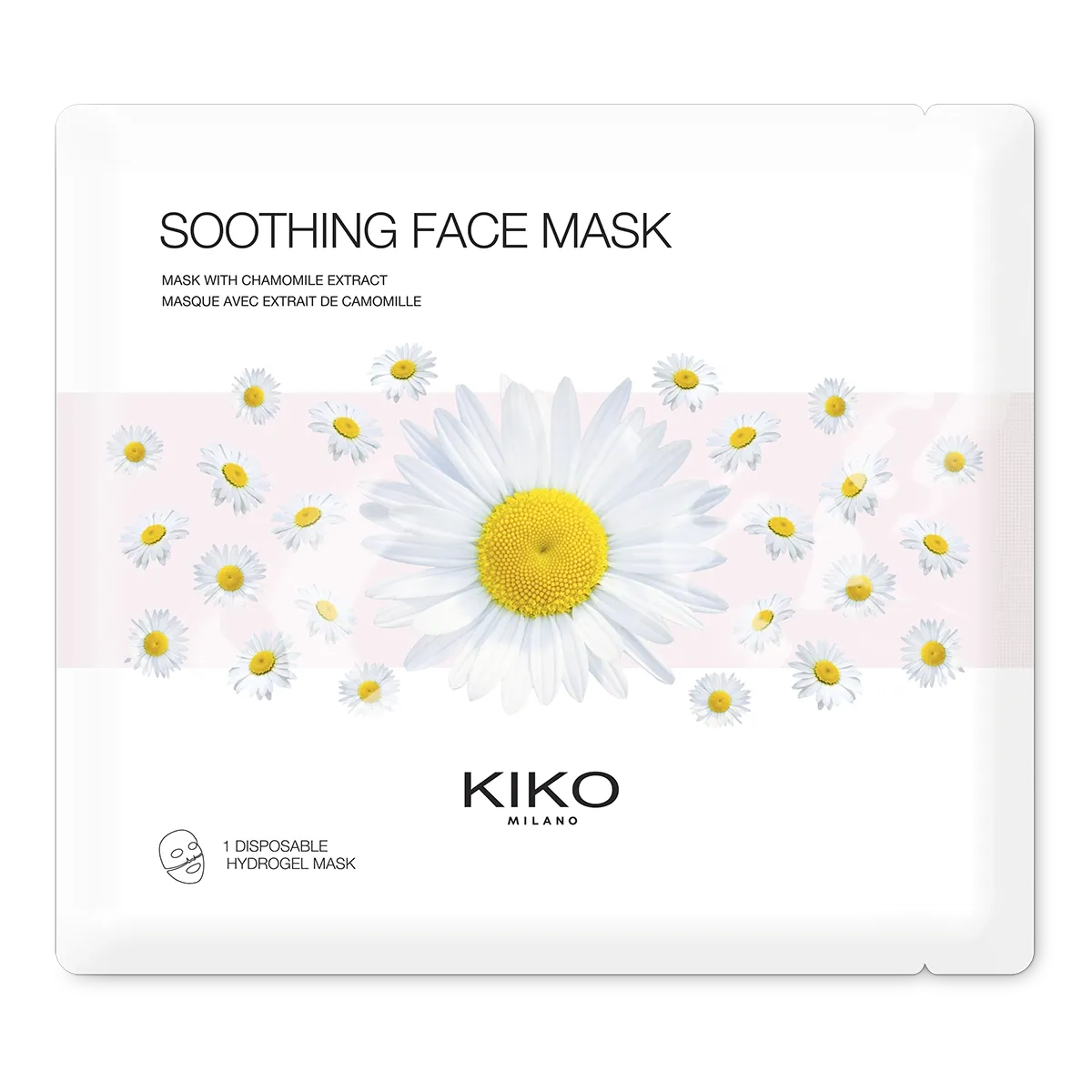 Single-use soothing hydrogel mask, specifically for the face and especially recommended for delicate skin.